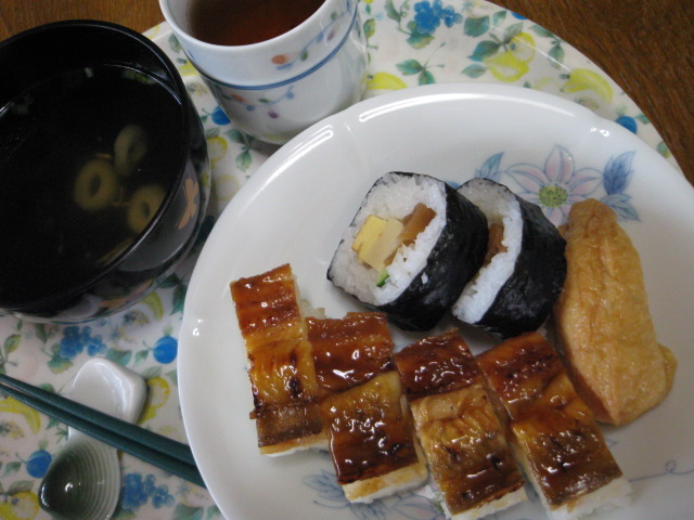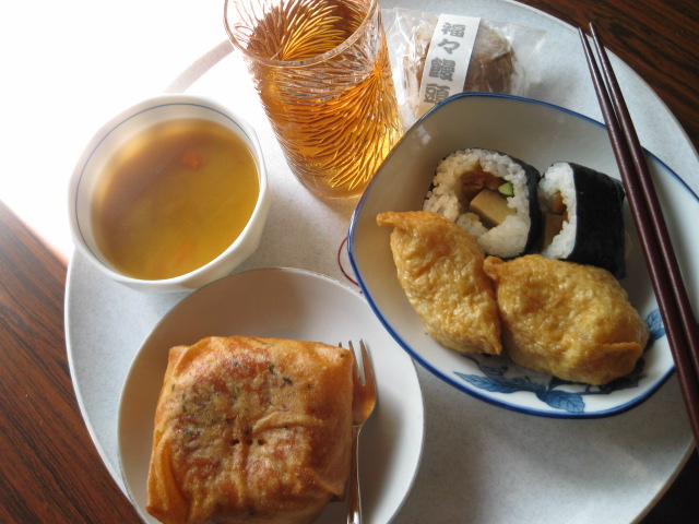 *煮麺(玉ねぎ・うどん揚げ入り)・ぶどう・黒豆茶→姑用