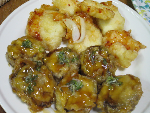 出来合いの天ぷらを揚げ直すついでに、ジャガイモもから揚げにする。