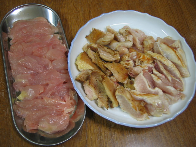 胸肉と腿肉は、この前と同じく軽く炙ってあった。