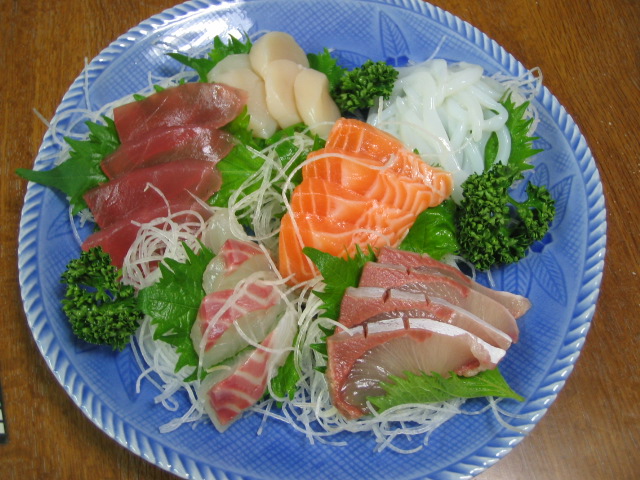 刺身はニンニクと生姜のすりおろしを薬味に、刺身醤油で食べると旨いと聞いてきた夫が、それらを買いに行く。