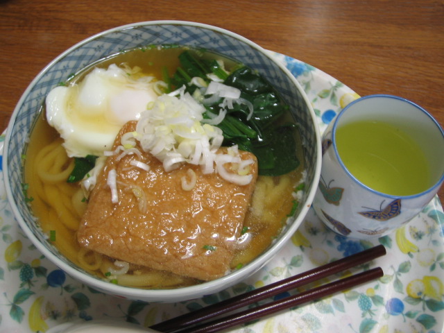 *うどん(卵・うどん揚げ・ほうれん草・ネギ入り)→姑用