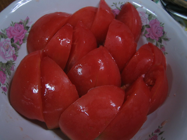 本当はトマトの皮を湯剥きした方が口当たりがいいと思いつつ、剥かずに入れてしまうが。