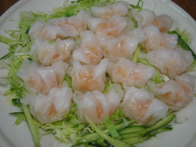 餃子が苦手な姑も少しは食べられるように、海老蒸し餃子にする。