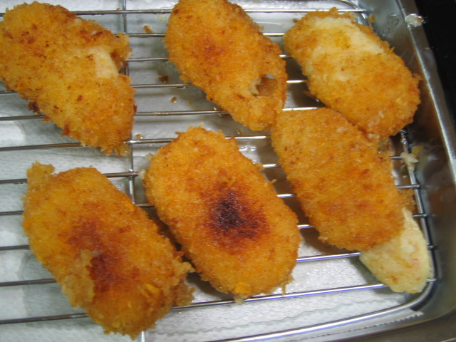 冷凍のクリームコロッケを揚げると、すぐ中身がはみ出しちゃう。