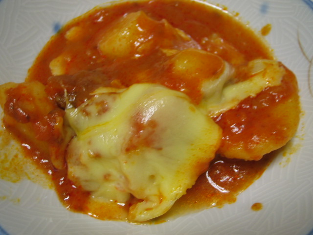 *鶏肉・茄子・ジャガイモのトマトソース煮・チーズがけ