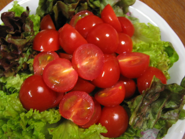 前にも書いたかも知れないが、うちではミニトマトを半分に切って出す。