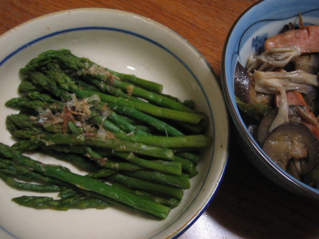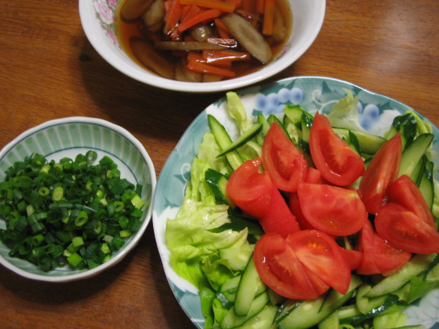 揚げ物は出来合いの惣菜。もちろん、余ったらお弁当のおかずにするつもり。