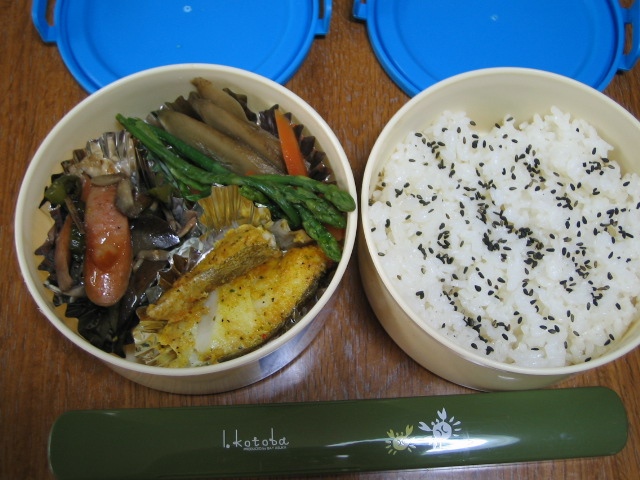 弁当箱を探したものの、適当な大きさのが出てこなかったので、まだ春休み中の息子のを失敬する。
