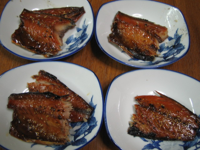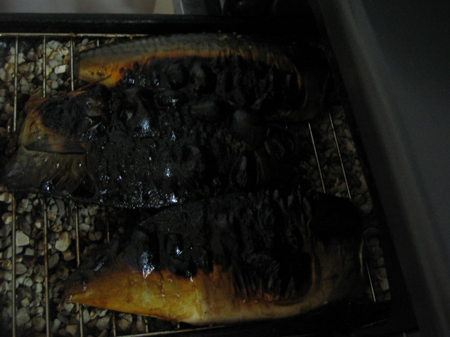 味醂干しを普通の火加減で焼いたために、皮だけ焦げてしまった。。。