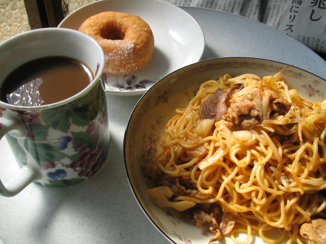 うちのお昼で、全員同じものを食べるのは、この焼きそばくらいかも。