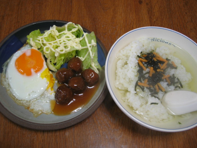 *お茶漬け、目玉焼き、肉団子、レタス→夫、息子用