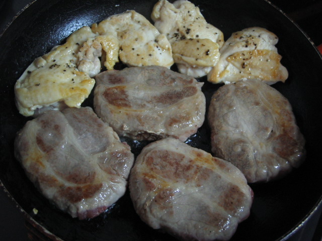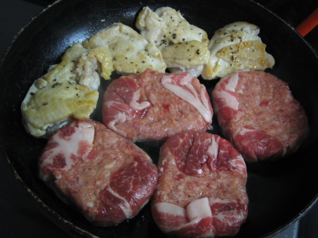 これだけじゃちょっとボリューム不足だから、鶏の胸肉も一緒に焼くことにする。