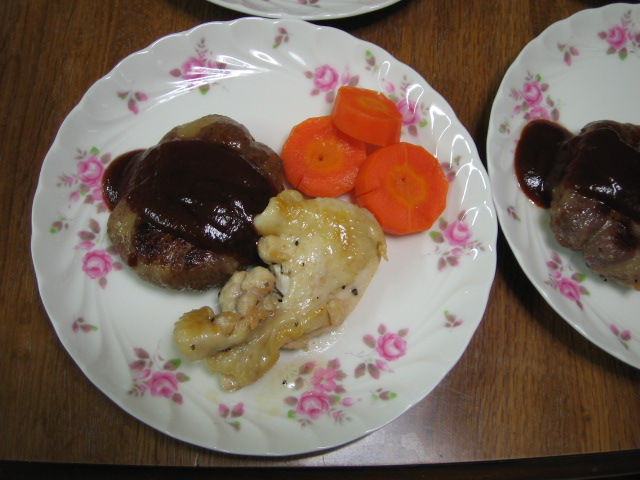 「ん~、鶏なん? じゃあ、この鶏だけもらうわ。これ(ハンバーグ)誰か食べて」
