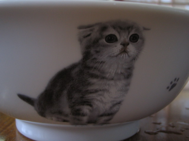 この丼、何年か前のお正月、実家の小樽に里帰りしていた時に、都通りの『小川』で買った“猫袋”に入っていたもの。