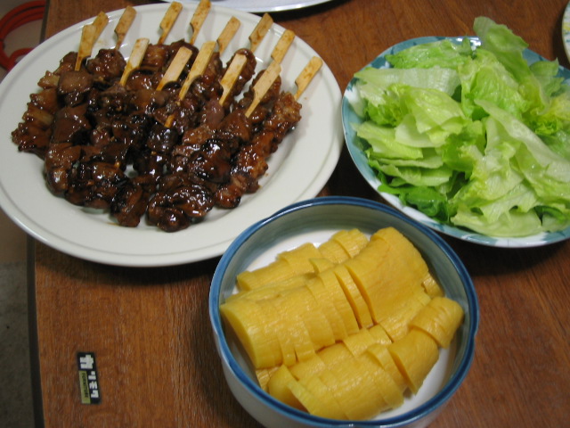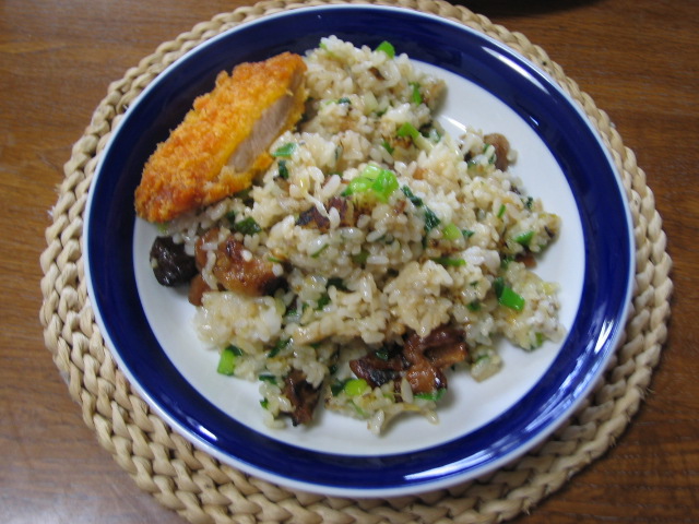 この日の具は、前日の焼き鳥の残りとネギ。同じく残り物のトンカツを添える。かなり油っぽい組み合わせになってしまった。