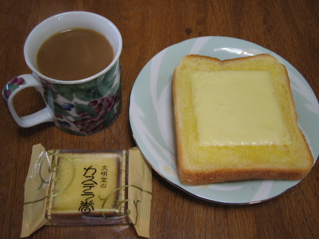 姑が、息子のインフルエンザを気遣って買ってきてくれた、文明堂のカステラ巻きを1個いただく。